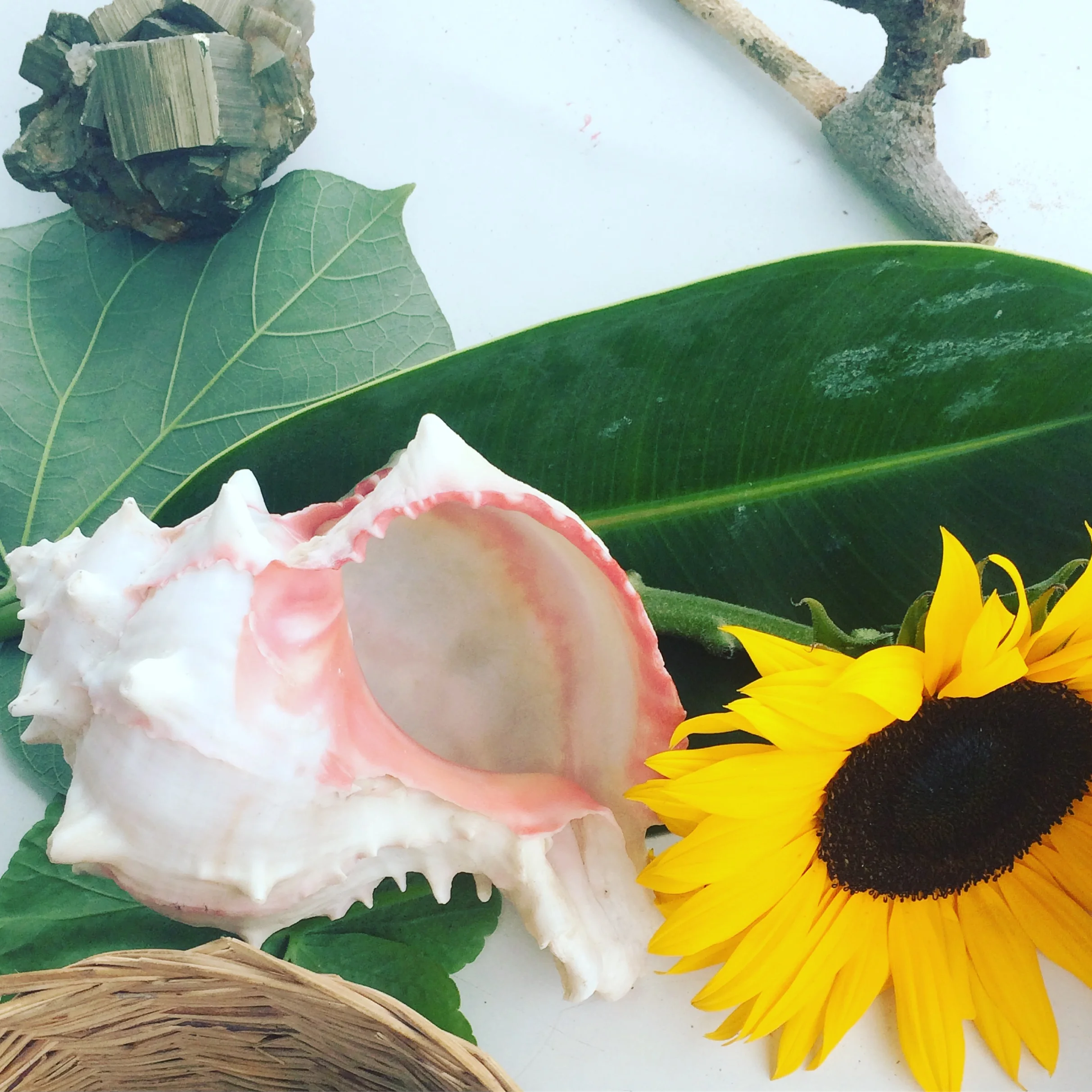 A nature table at a local fair for the kids to interact with. They loved 'hearing the sea' in the big shell.